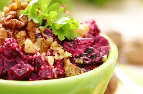 Salade de betteraves, chèvre frais et noix