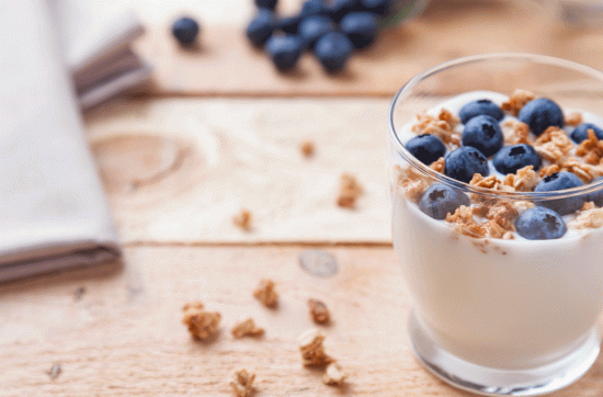 Les petits fruits frais de saison donneront de l’éclat à vos matins dans ce parfait au yaourt.