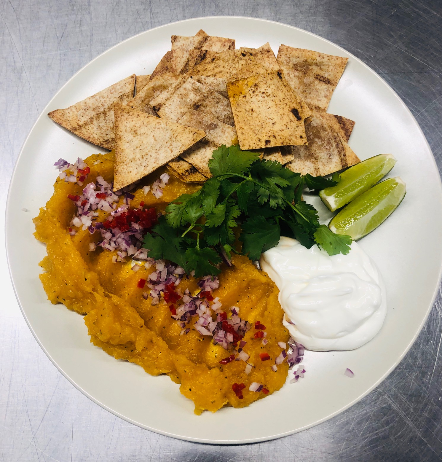 Accompagnez des garnitures et servez avec des chips tortillas.